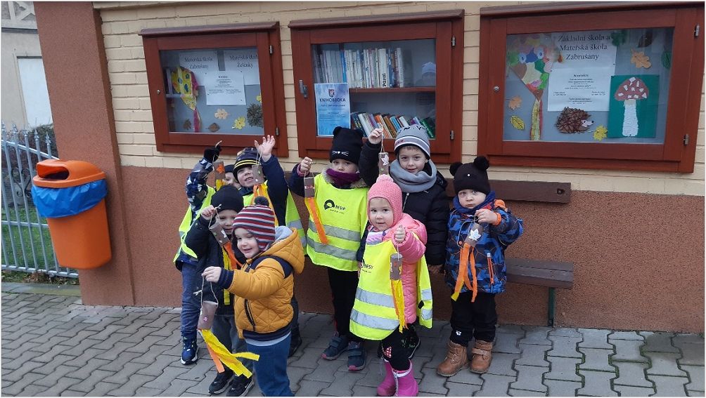 Jelikož nám nouzový stav neumožnil večerní lampionový průvod s rodiči, rozhodli jsme se 11.11. si průvod s lampiony uskutečnit dopoledne během procházky. Děti si vyrobily vlastní lampiony.