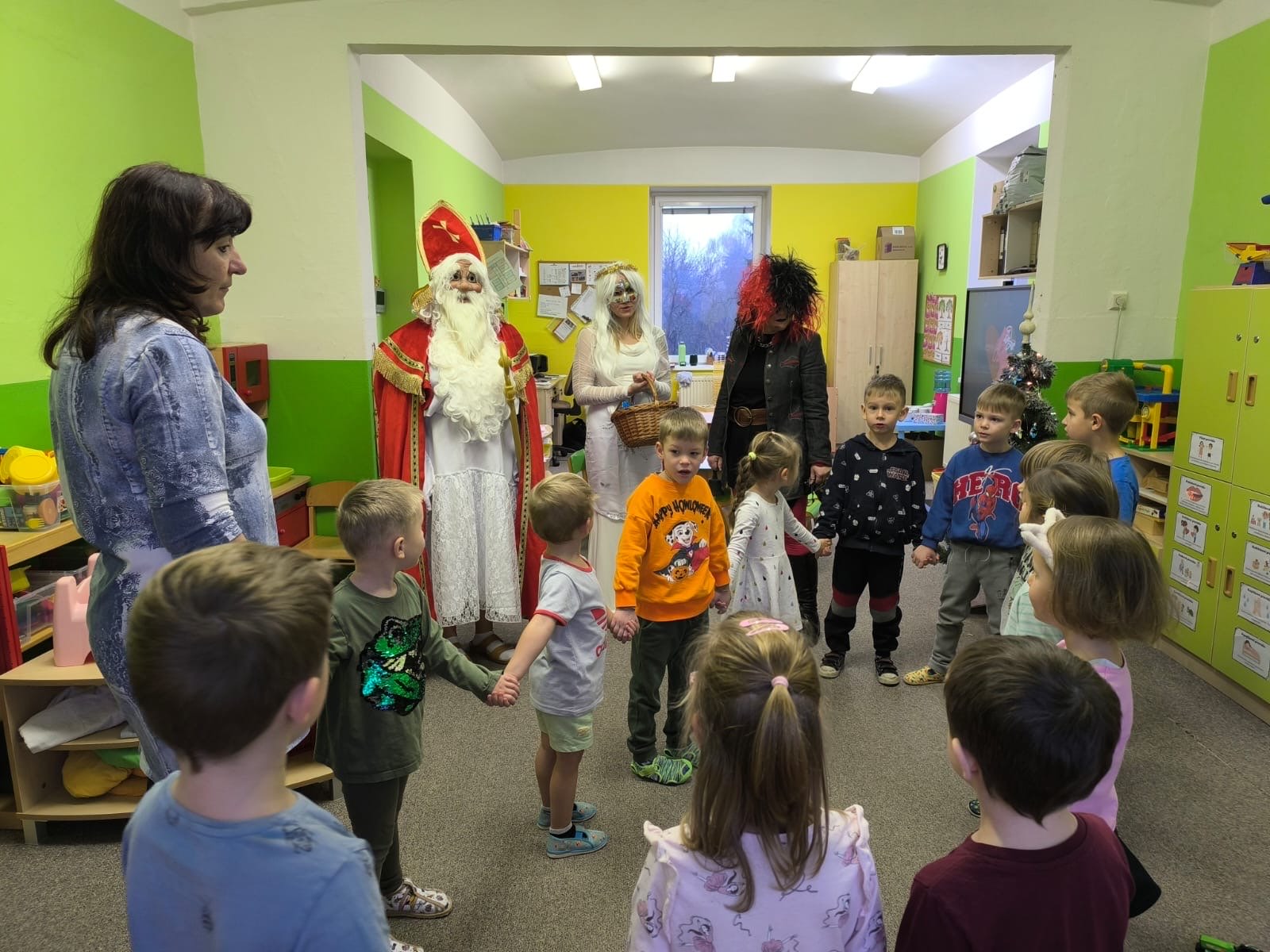 V pátek 5. prosince jsme v mateřské škole přivítali tradiční mikulášskou návštěvu. Do školky zavítal Mikuláš doprovázený andělem a čertem, kteří přinesli dětem radost a kouzelnou atmosféru adventu. Děti statečně vystoupily s připravenými básničkami a na závěr obdržely zaslouženou nadílku.