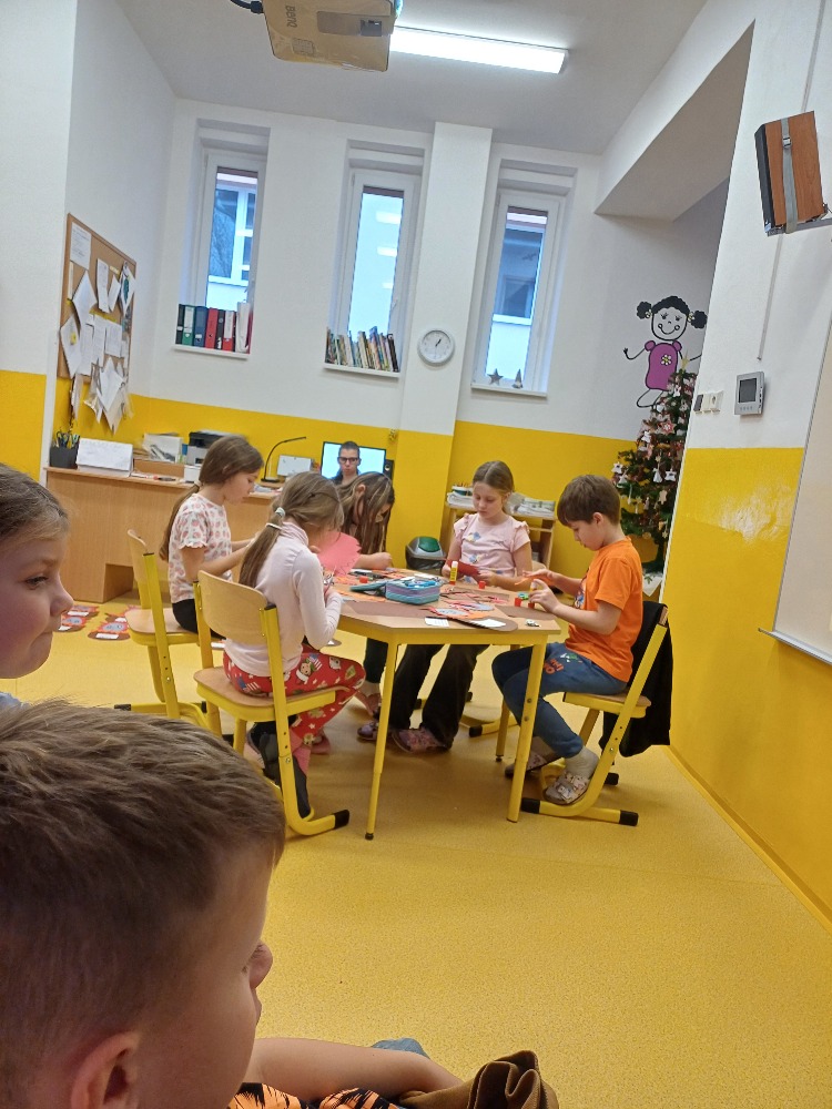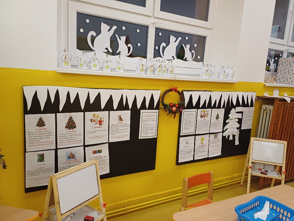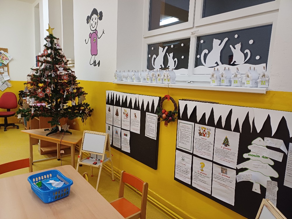 Po celý prosinec plnily úkoly, které pro ně přichystal Ježíšek. Vyráběly vánoční ozdoby, zdobily stromeček, vyzdobily chodbu i prostory družiny, zpívaly koledy, recitovaly, tancovaly, kreslily a s nadšením se připravovaly na vánoční besídku. Za splněné úkoly si děti mohly otevřít adventní domeček, ve které je čekalo malé překvapení.