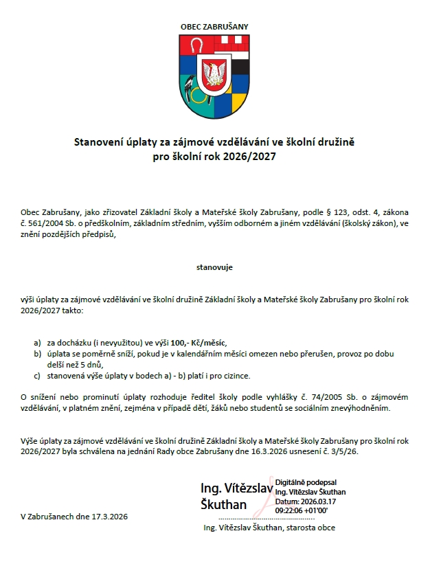 Ředitelka základní školy, jejíž činnost vykonává Základní škola a Mateřská škola Zabrušany,…