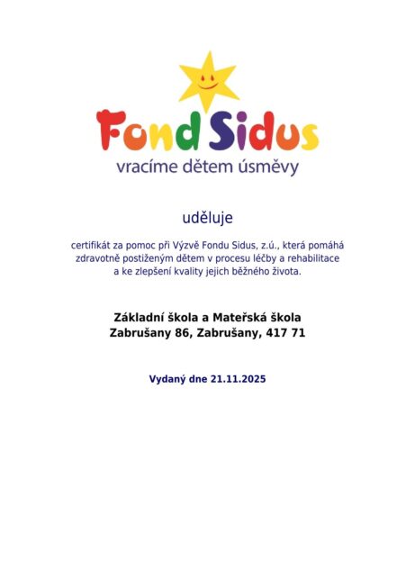 - Čtení pomáhá – zapojení do charitativního projektu, podpora a rozvoj čtenářské gramotnosti